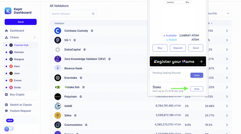 ATOM holders can earn staking rewards, thereby increasing their ATOM holdings by simply staking their ATOM tokens with any one of the active validators on the network.