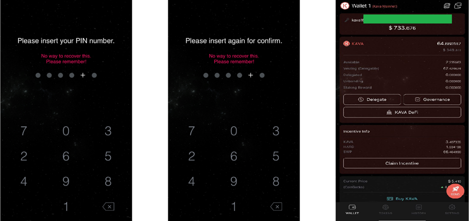 Next, Insert your PIN -> Confirm your PIN -> Your personal KAVA wallet